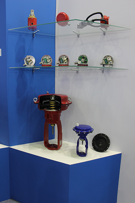 На стенде были представлены различные виды навесного оборудования, в т.ч. сигнализатор конечных положений с повышающим редуктором для клапанов с малым ходом.